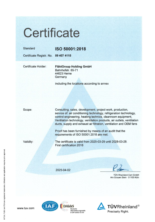 Diese im Februar 2021 erlangte Zertifizierung zeigt unser Engagement für eine systematische Verbesserung der Energieleistung und Nachhaltigkeit.