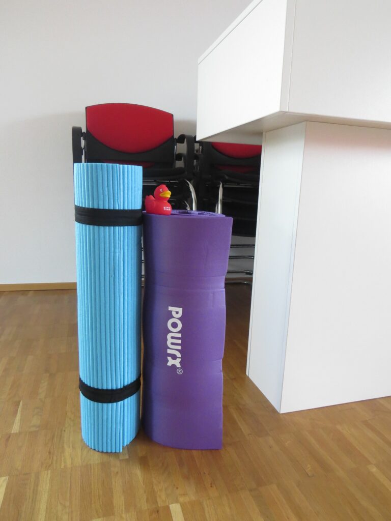 Rückenkurs bei SE-Elektronic Since 15.03.2018 we offer in cooperation with the TK a weekly back course with us in the company. Also our SE-duck Selly has a lot of fun with it. Every Thursday at 4:45 pm our training room becomes a gym.